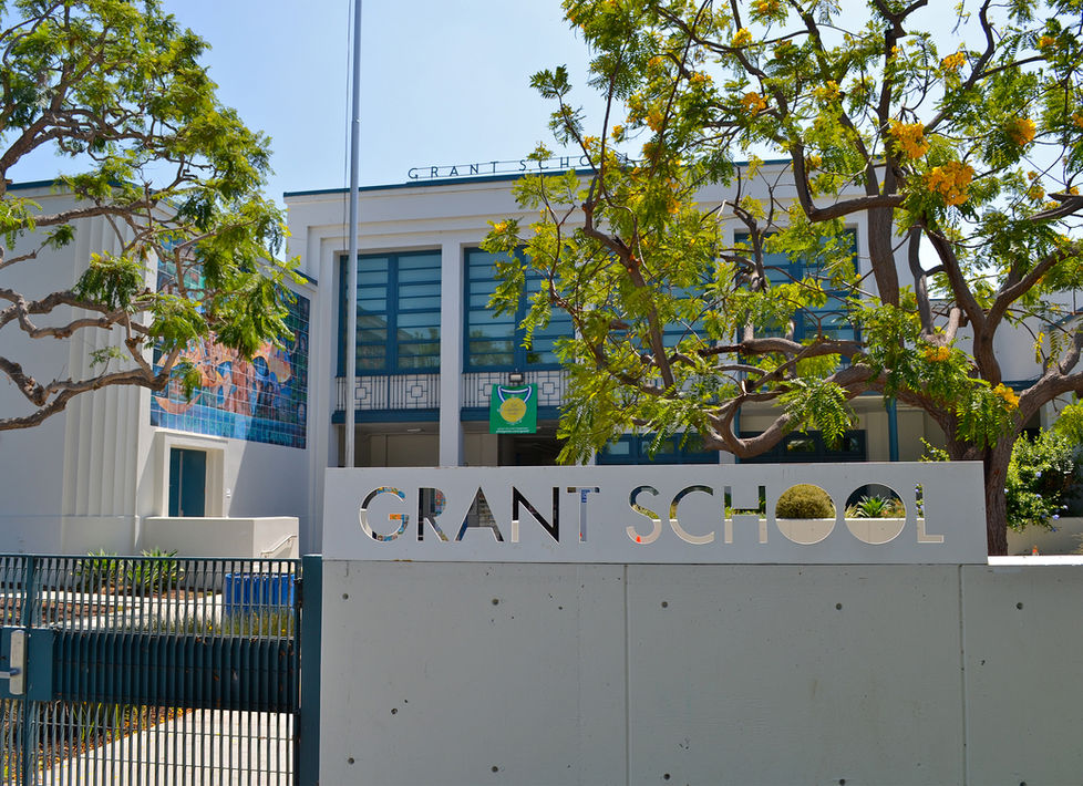 Grant Elementary School is a classic example of Streamline Moderne architecture. Fronting a residential street, the campus features grassy quads, mature trees, an outdoor dining area, and basketball court. Call 310-633-1451 to scout today.